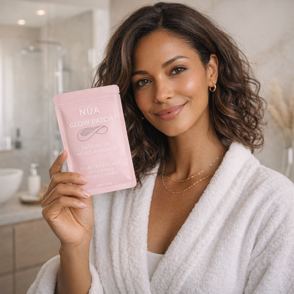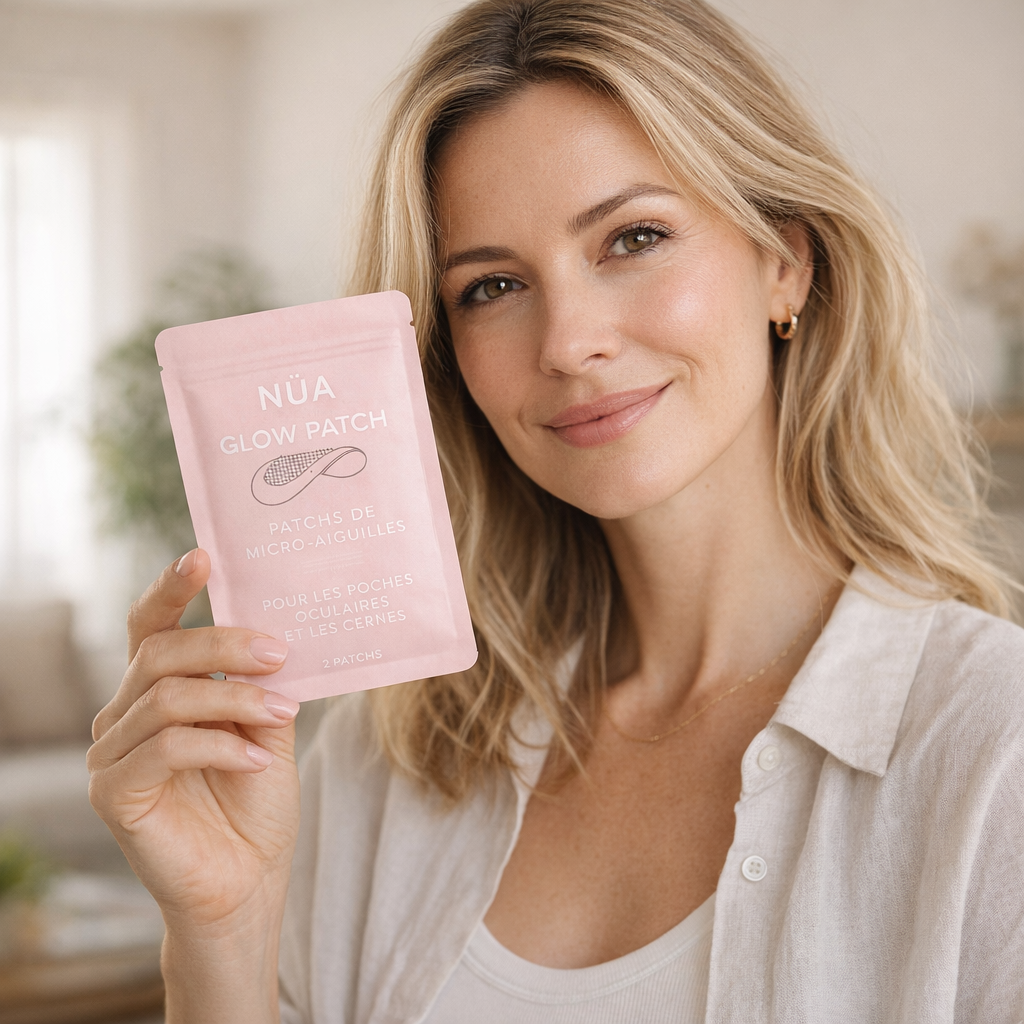 Formulé avec une technologie de micro-aiguilles inspirée des soins dermatologiques, NÜA GLOW PATCH libère progressivement des actifs ciblés afin d’agir en profondeur sur les poches, cernes et ridules.